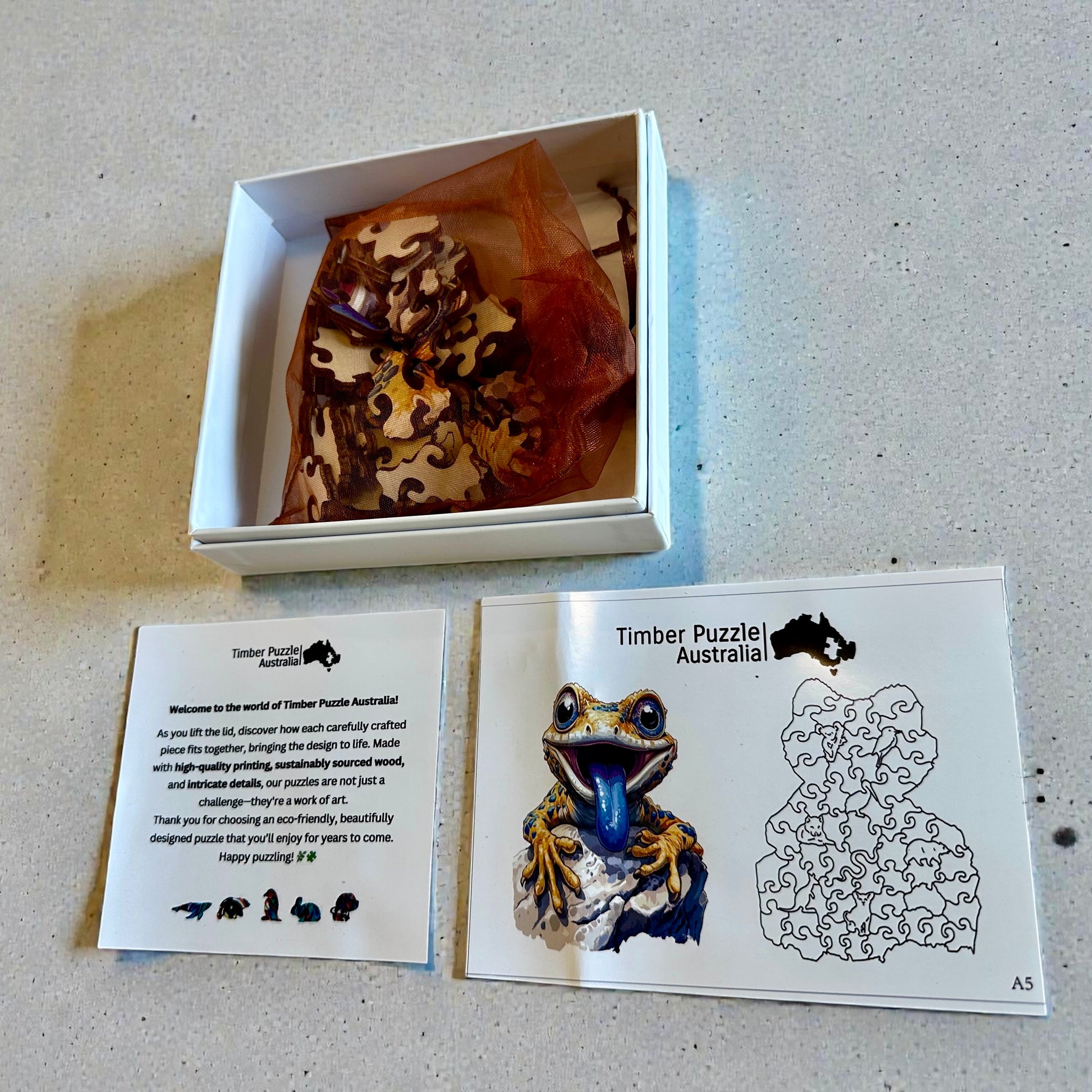 Experience the beauty of Australian Gecko Puzzle, featuring a charming vintage-inspired. Made from eco-friendly materials, this puzzle offers a fun and stimulating brain challenge while serving as a stunning piece of art that can be framed and displayed. Perfect for enhancing cognitive function and adding a touch of nostalgic charm to your home, this puzzle is an ideal choice for both entertainment and decoration.
