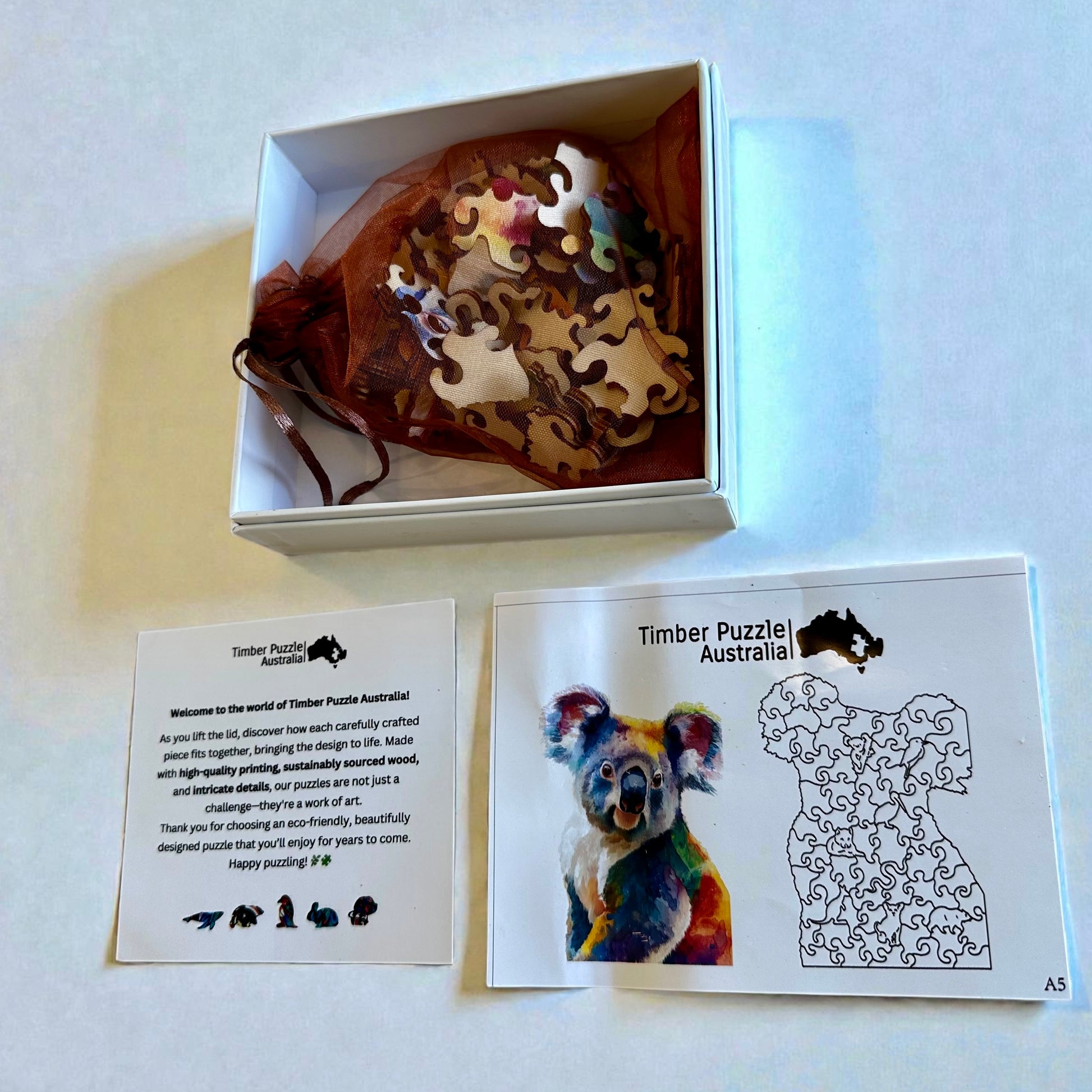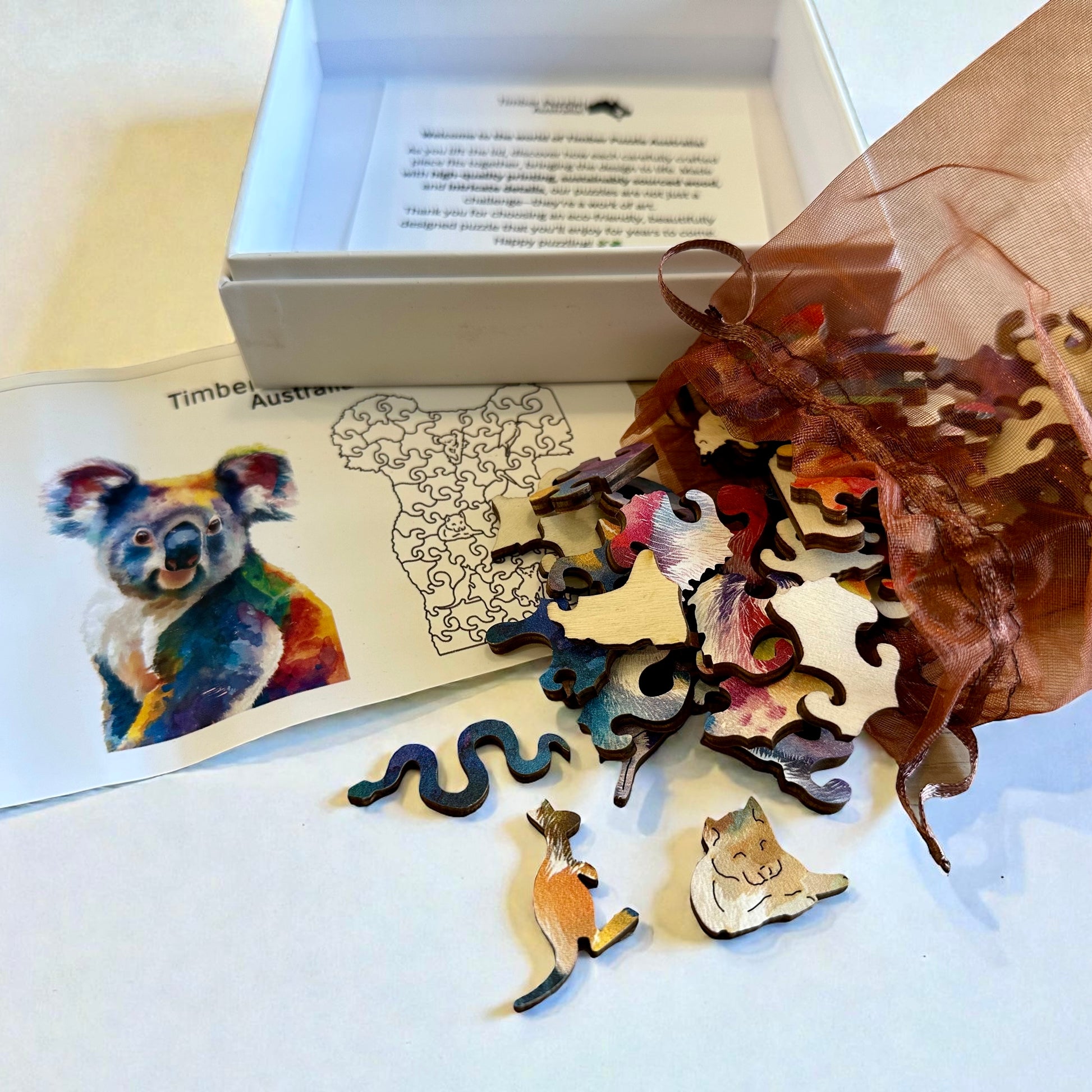 Experience the beauty of Colorful Koala Puzzle, featuring a charming vivid color-inspired. Made from eco-friendly materials, this puzzle offers a fun and stimulating brain challenge while serving as a stunning piece of art that can be framed and displayed. Perfect for enhancing cognitive function and adding a touch of nostalgic charm to your home, this puzzle is an ideal choice for both entertainment and decoration.