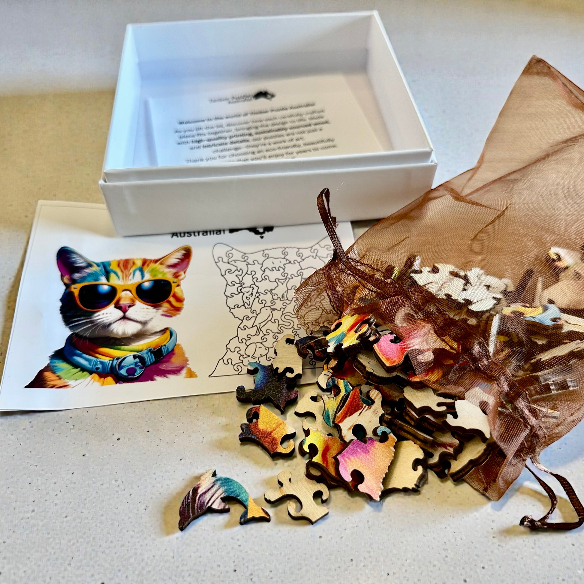 Experience the beauty of Cool Cat Wooden Puzzle, featuring a charming vintage-inspired. Made from eco-friendly materials, this puzzle offers a fun and stimulating brain challenge while serving as a stunning piece of art that can be framed and displayed. Perfect for enhancing cognitive function and adding a touch of nostalgic charm to your home, this puzzle is an ideal choice for both entertainment and decoration.