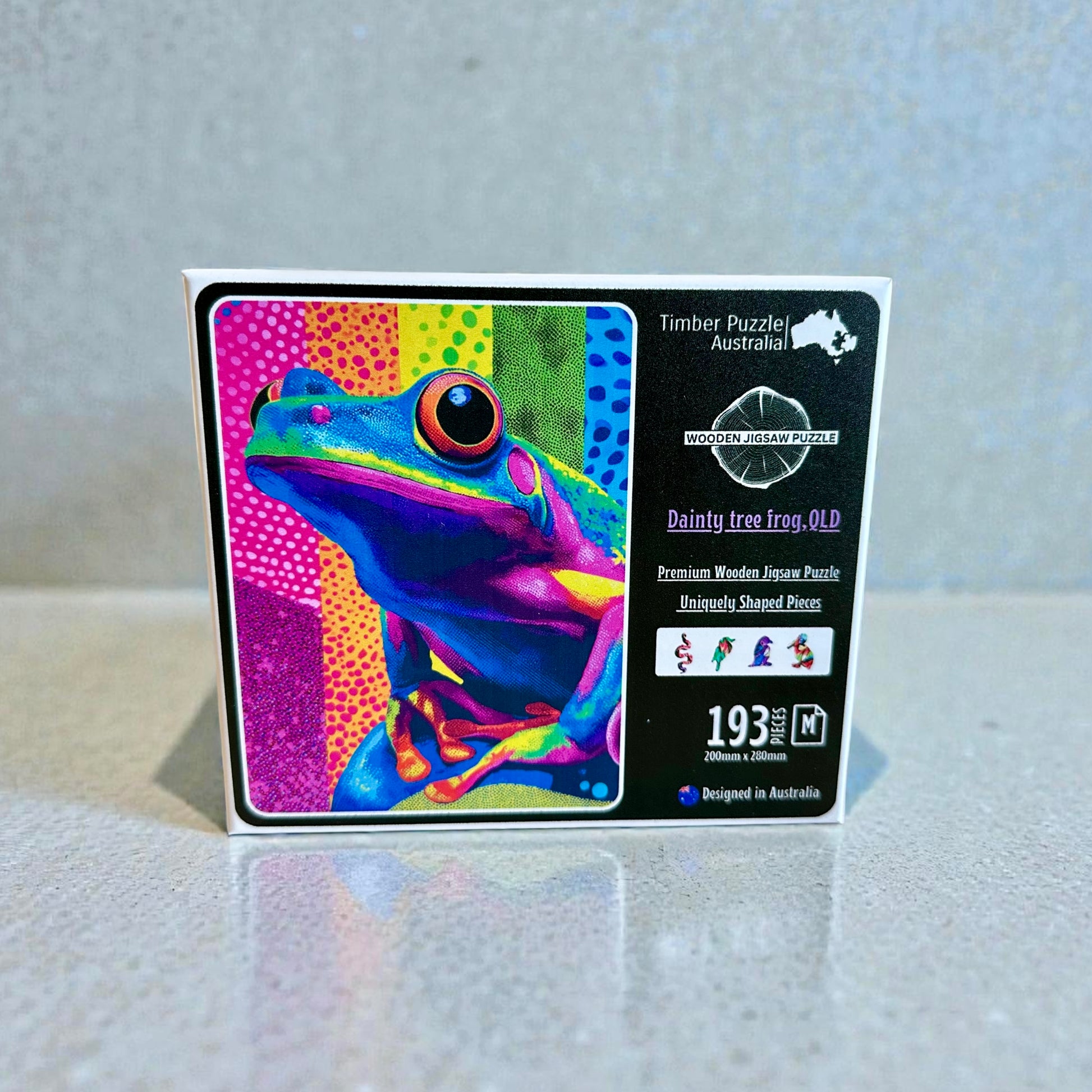 Experience the beauty of Dainty Tree Frog Wooden Puzzle. Made from eco-friendly materials, this puzzle offers a fun and stimulating brain challenge while serving as a stunning piece of art that can be framed and displayed. Perfect for enhancing cognitive function and adding a touch of nostalgic charm to your home, this puzzle is an ideal choice for both entertainment and decoration.