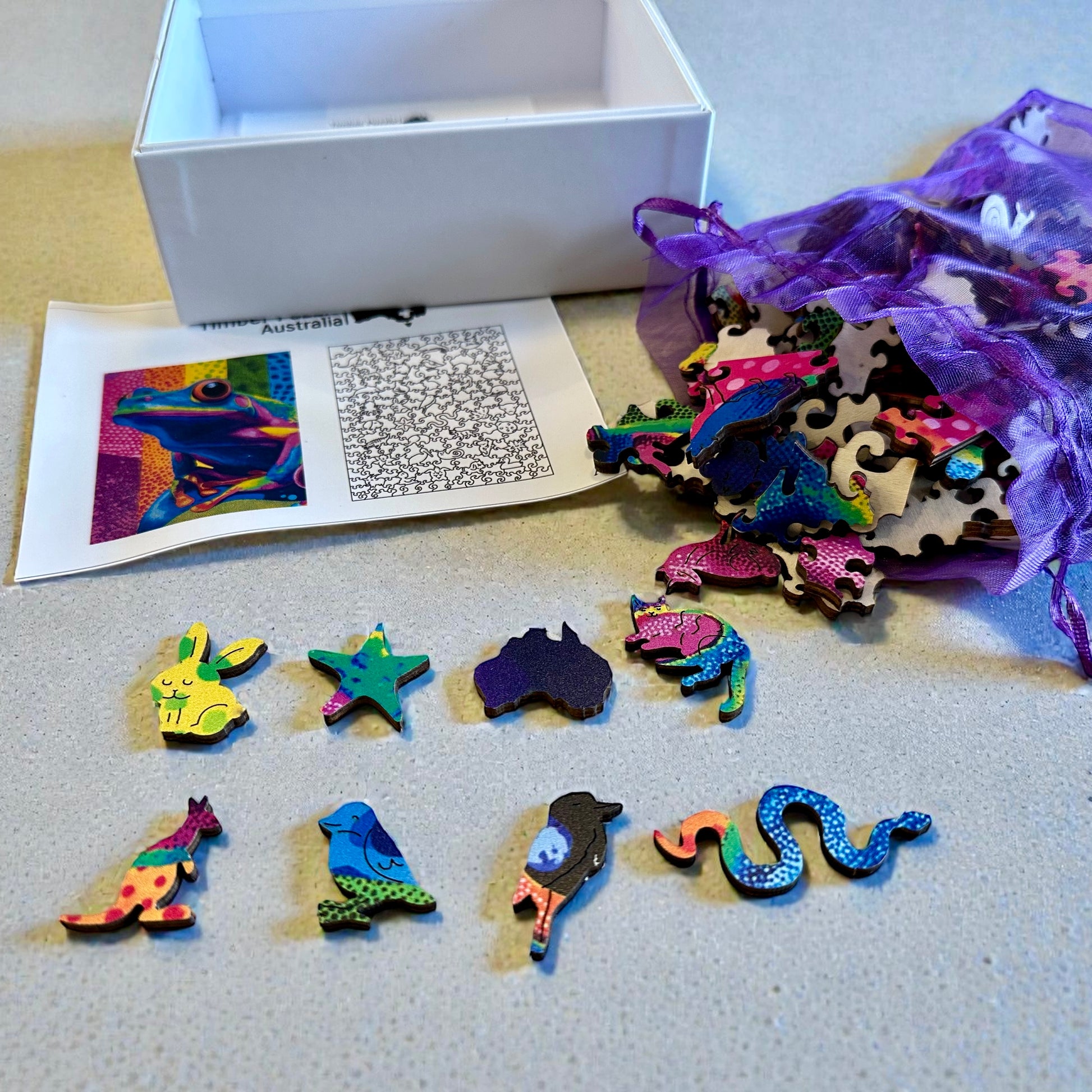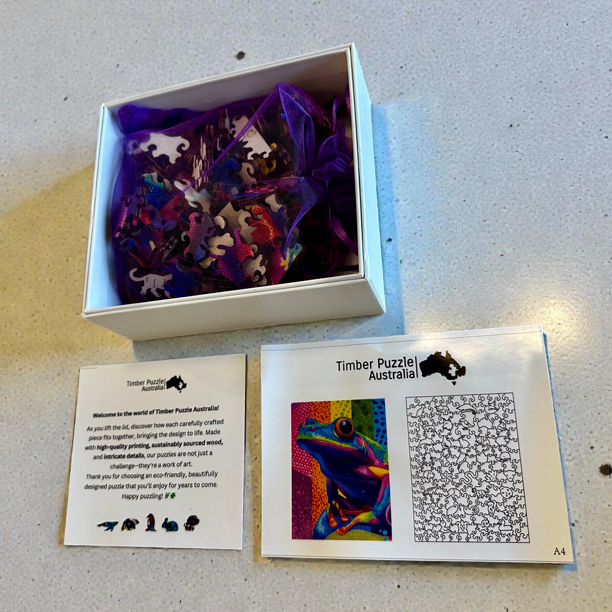 Experience the beauty of Dainty Tree Frog Wooden Puzzle. Made from eco-friendly materials, this puzzle offers a fun and stimulating brain challenge while serving as a stunning piece of art that can be framed and displayed. Perfect for enhancing cognitive function and adding a touch of nostalgic charm to your home, this puzzle is an ideal choice for both entertainment and decoration.