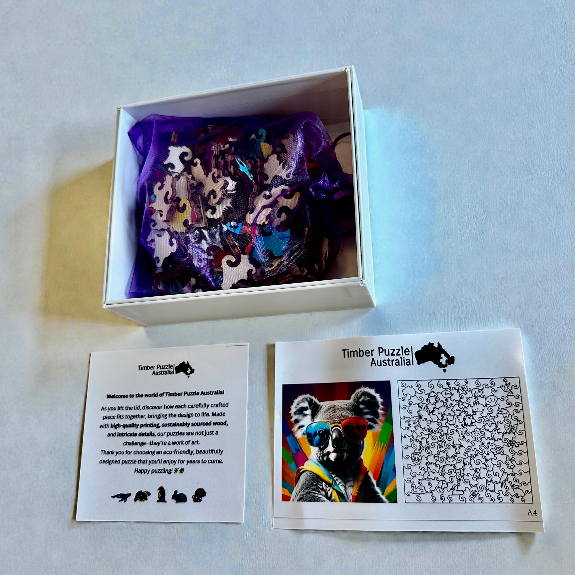 Experience the beauty of Retro Koala Wooden Puzzle, featuring a charming vintage-inspired. Made from eco-friendly materials, this puzzle offers a fun and stimulating brain challenge while serving as a stunning piece of art that can be framed and displayed. Perfect for enhancing cognitive function and adding a touch of nostalgic charm to your home, this puzzle is an ideal choice for both entertainment and decoration.